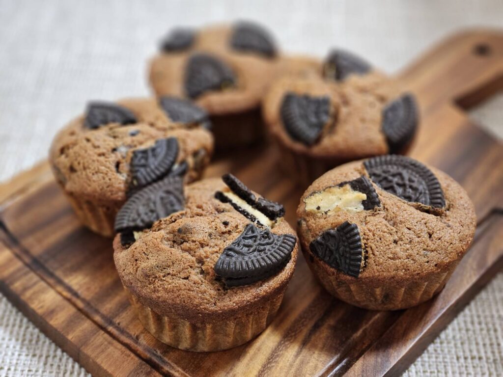 今回は生地にたっぷりのチョコレートを混ぜ込み、オレオを贅沢に乗せて。